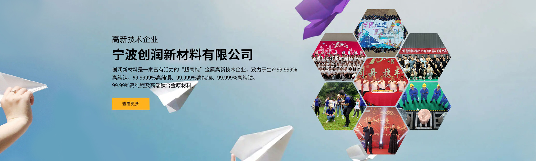 創(chuàng)潤(rùn)新材料是一家富有活力的“超高純”金屬高新技術(shù)企業(yè),致力于生產(chǎn)超高純金屬原材料。產(chǎn)品涉及半導(dǎo)體靶材,航空發(fā)動(dòng)機(jī),生物醫(yī)療用高純金屬, 軍工用特殊性能材料等。是國(guó)內(nèi)唯一的超高純鈦金屬產(chǎn)業(yè)生產(chǎn)基地,使中國(guó)躋身為世界上僅有的三個(gè)擁有該技術(shù)和產(chǎn)線(xiàn)的國(guó)家之一。經(jīng)過(guò)多年的市場(chǎng)開(kāi)拓與客戶(hù)驗(yàn)證,創(chuàng)潤(rùn)逐步形成了超高純鈦、銅、鎳、鈷、鈮及高端鈦合金產(chǎn)品體系。